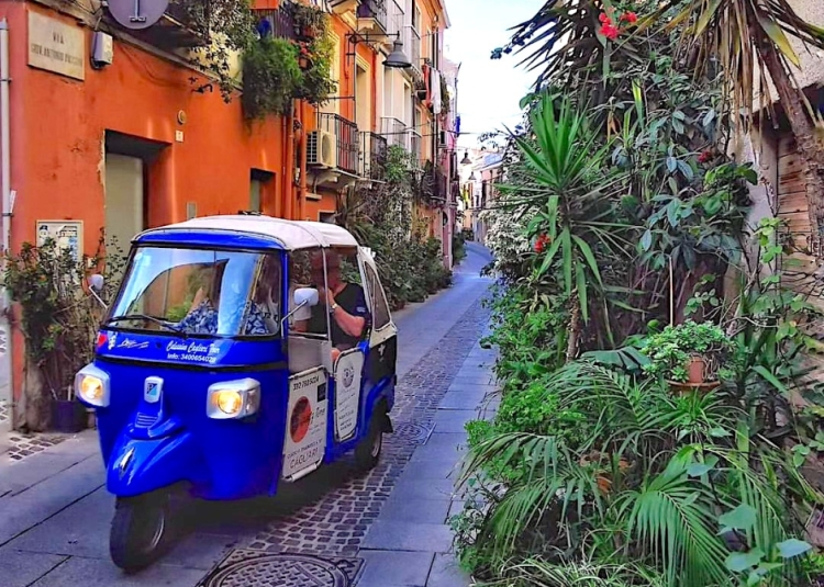 Exploring the captivating streets of Cagliari, the capital of Sardinia, with an Ape Calessino buggy tour.